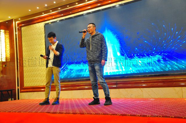 公司總結(jié)表彰會(huì)結(jié)束后,2018年迎春文藝演出閃亮登場(chǎng)。隨著兩位主持人華麗的開場(chǎng)詞,“才藝達(dá)人”精心準(zhǔn)備的歌曲、舞蹈、小品節(jié)目為員工送上了新春的祝福。節(jié)目既突出了節(jié)儉大方的格調(diào),又不失歡快熱烈的氣氛?,F(xiàn)場(chǎng)不時(shí)爆出陣陣熱烈的掌聲。同時(shí),在節(jié)目演出中還穿插抽獎(jiǎng)活動(dòng),邀請(qǐng)公司領(lǐng)導(dǎo)及部分中層領(lǐng)導(dǎo)公開抽取幸運(yùn)獎(jiǎng)。演出精彩落幕后,公司黨委書記沈波立致祝酒詞。整個(gè)團(tuán)拜會(huì)場(chǎng)面,燈火通明,熱鬧祥和,觥籌交錯(cuò),祝語飛揚(yáng),董事長王力明等公司領(lǐng)導(dǎo)高舉酒杯,沿桌為全體員工提前拜年。大家齊聚一起,共同慶祝2017年度取得的輝煌成績,在笑語歡聲中暢想著2018年的美好愿景。
