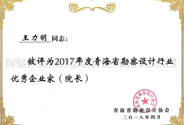 會(huì)上表彰了2017年度青海省勘察設(shè)計(jì)行業(yè)優(yōu)秀企業(yè)和2017年度青海省勘察設(shè)計(jì)行業(yè)優(yōu)秀企業(yè)家。我公司被授予2017年度青海省勘察設(shè)計(jì)行業(yè)優(yōu)秀企業(yè),董事長(zhǎng)王力明被授予2017年度青海省勘察設(shè)計(jì)行業(yè)優(yōu)秀企業(yè)家。